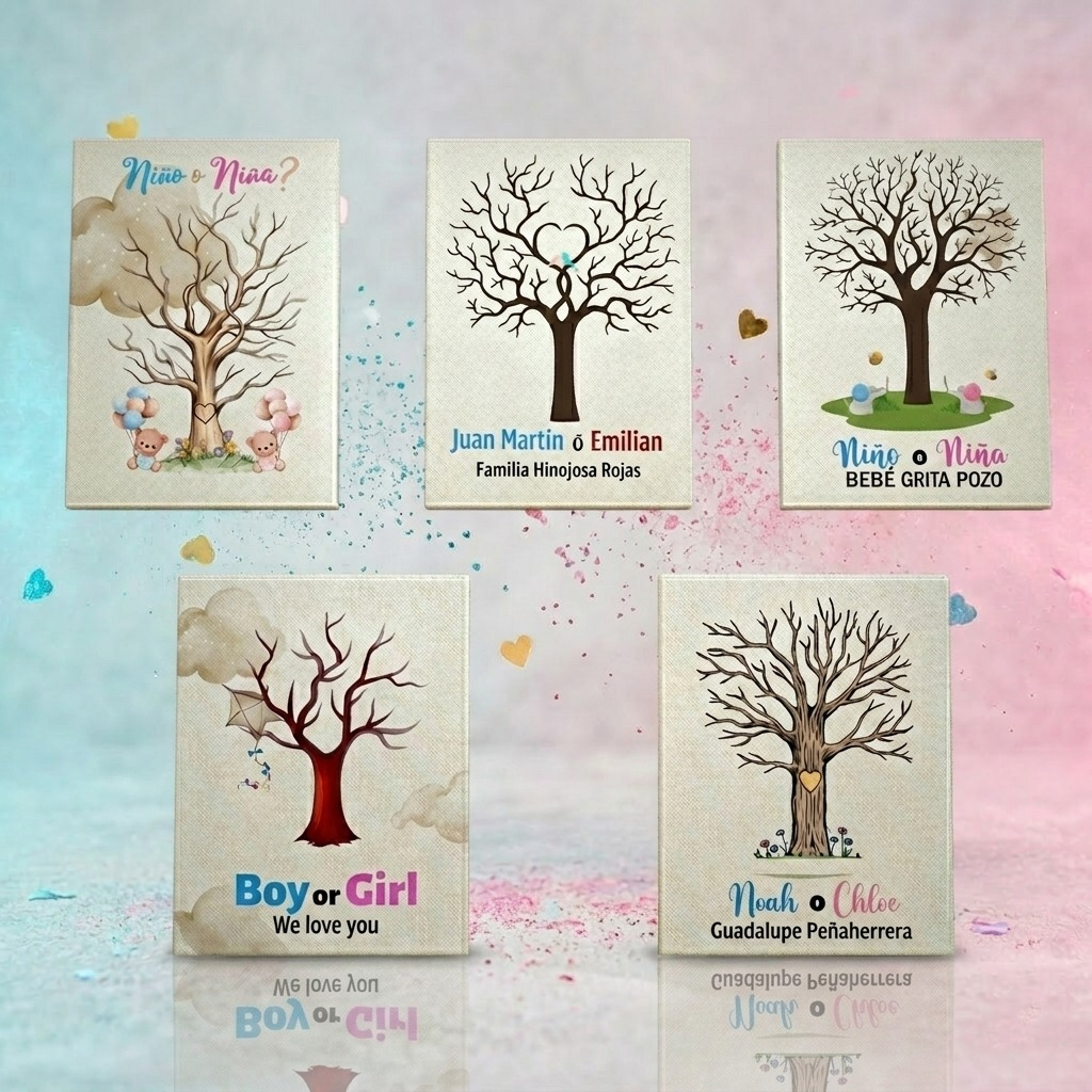 • Personalización Incluida: Editamos el lienzo con los nombres de los padres, el apellido familiar o las opciones de nombres para el bebé.