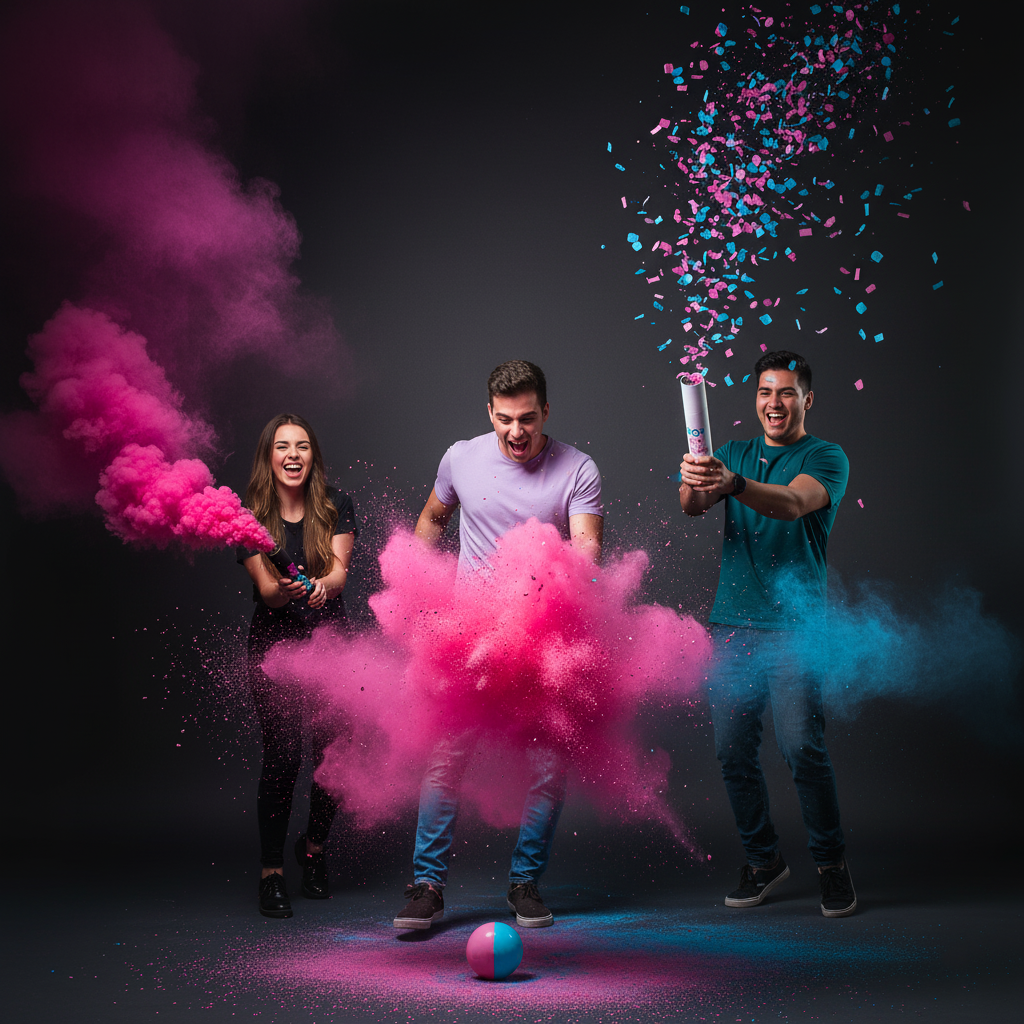 ¡Celebra tu gran noticia con nuestro Combo Económico de Revelación de Género! Incluye mini pelota sorpresa, bengala de humo y lanza confeti para un momento mágico y asequible.